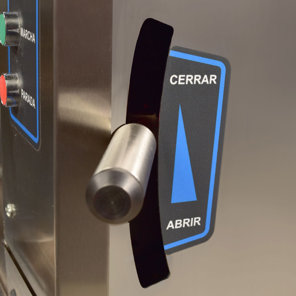 - Sistemas de seguridad: Barra horizontal de parada de emergencia, pulsador y rodillo de seguridad